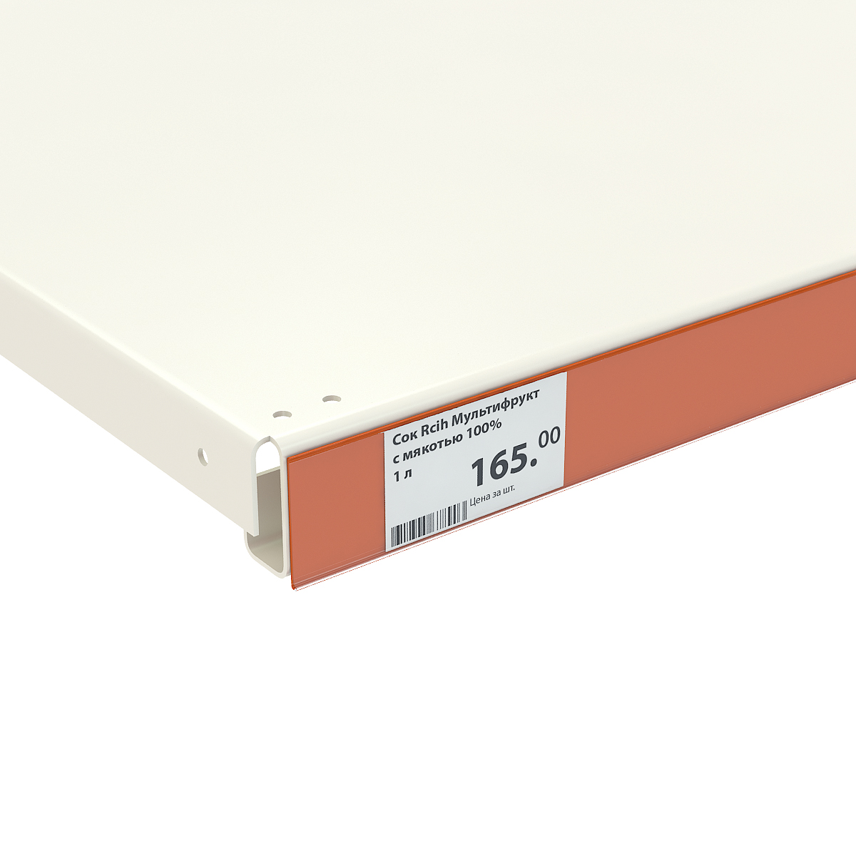 Оранжевый ценникодержатель DBR39 подходит для большинства стеллажных полок в магазинах всех форматов.