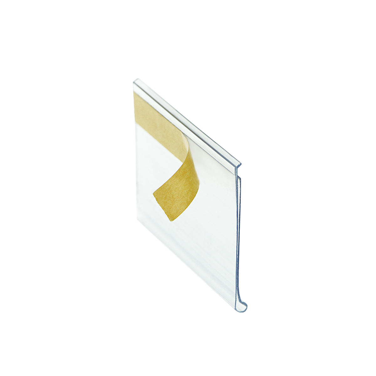 Самоклеящийся ценникодержатель DBR высотой 39 мм является самым популярным решением для размещения ценников на полках с товарами. Крепится на поверхность при помощи скотча, нанесенного на него, и применяется для размещения ценников стандартного размера высотой 39 мм.
