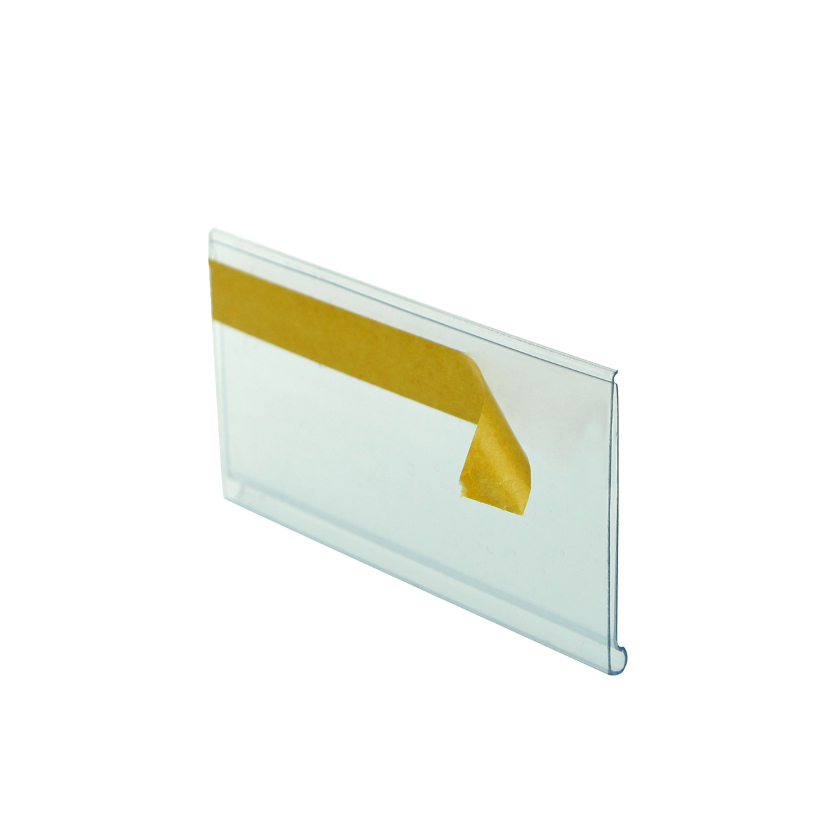 Самоклеящийся ценникодержатель DBR высотой 39 мм является самым популярным решением для размещения ценников на полках с товарами. Крепится на поверхность при помощи скотча, нанесенного на него, и применяется для размещения ценников стандартного размера высотой 39 мм.