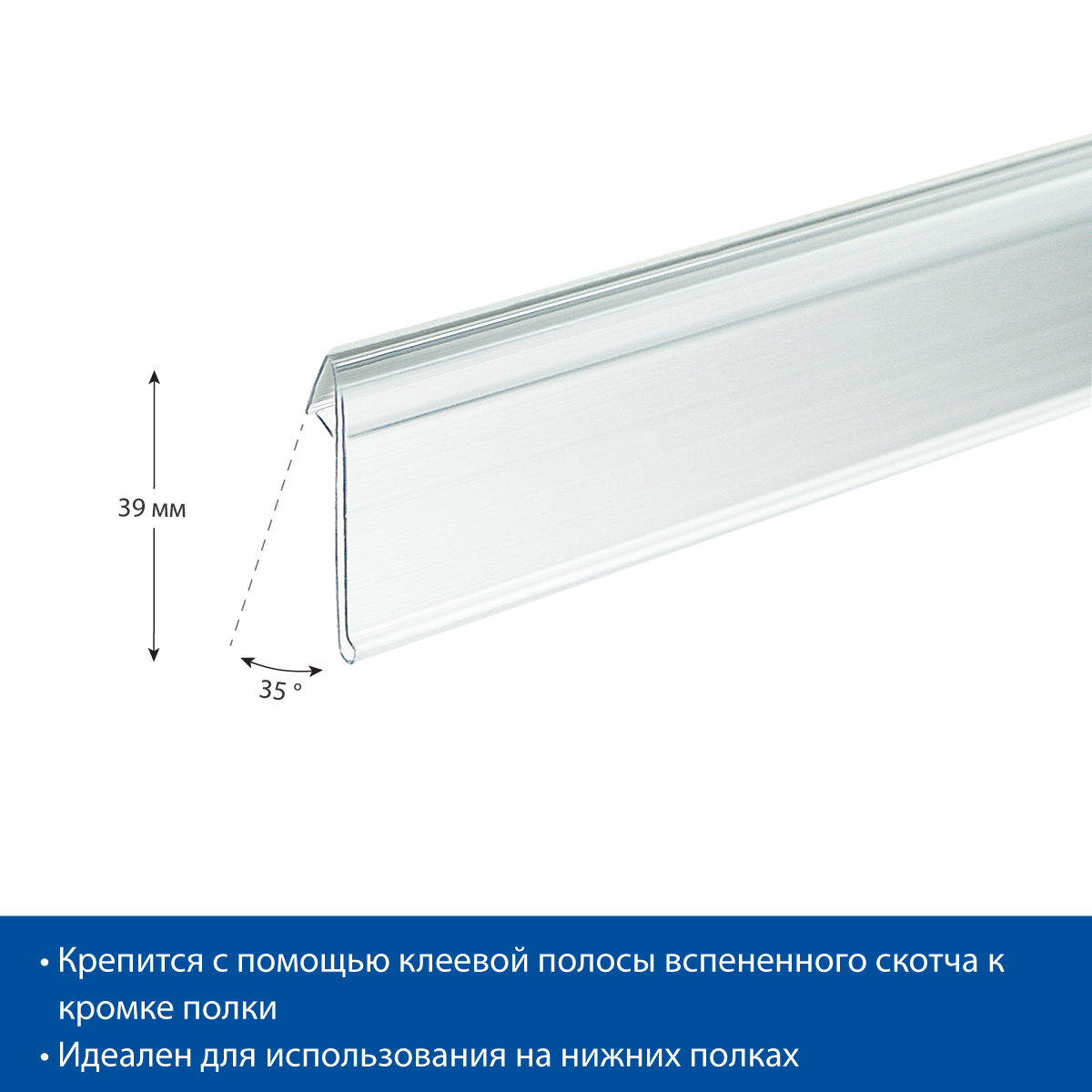 Ценникодержатель полочный самоклеящийся NO39 прозрачный, 1000 мм