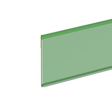 Самоклеящийся ценникодержатель DBR высотой 39 мм салатового цвета является самым популярным решением для размещения ценников на полках с товарами. Крепится на поверхность при помощи скотча, нанесенного на него, и применяется для размещения ценников стандартного размера высотой 39 мм. Он используется во всех форматах розничных продуктовых магазинов и форматах супермаркетов.