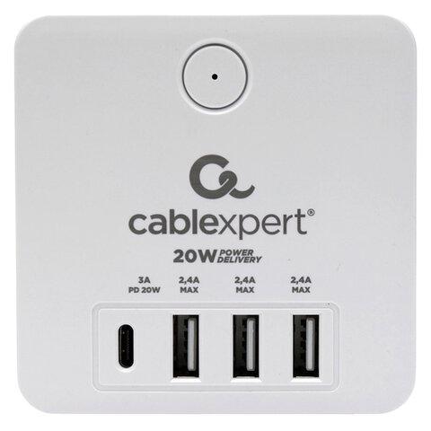 Сетевой фильтр CABLEXPERT Cube, 4 розетки, 16А, 1xType-C PD, 3хUSB, белый, CUBE-4-СU3-W