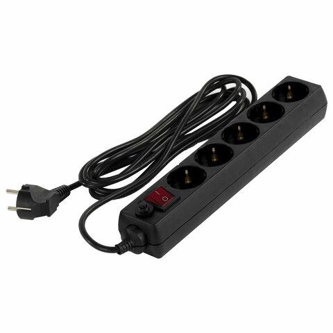Сетевой фильтр SONNEN U-3513, 5 розеток, с заземлением, выключатель, 10 А, 3 м, черный, 513489