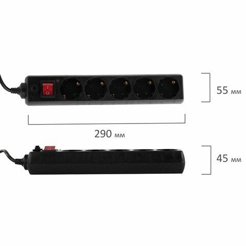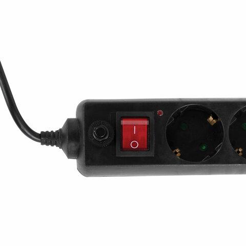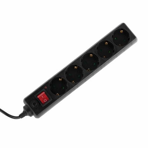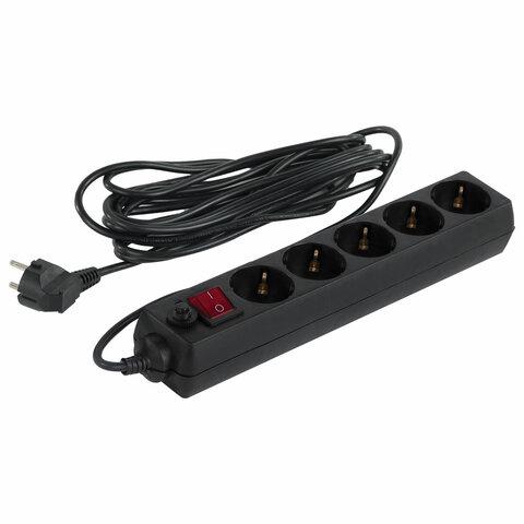 Сетевой фильтр SONNEN U-3515, 5 розеток, с заземлением, выключатель, 10 А, 5 м, черный, 513490