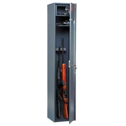 Предназначены для хранения огнестрельного оружия, комплектуются двумя ключевыми замками. Толщина металла корпуса и двери - 1,2 мм. Соответствуют (по заключению НИЦ «Охрана» МВД РФ) требованиям МВД РФ к хранению огнестрельного оружия.Для частных лиц и организаций, владеющих гражданским или служебным оружием, покупка оружейного сейфа — необходимость, продиктованная требованиями закона. Ст. 59 Постановления правительства РФ 814 от 21 июля 1998 г регламентирует место хранения оружия и патронов: «Принадлежащие гражданам Российской Федерации оружие и патроны должны храниться по месту их жительства с соблюдением условий, обеспечивающих их сохранность, безопасность хранения и исключающих доступ к ним посторонних лиц, в запирающихся на замок (замки) сейфах, сейфовых шкафах или металлических шкафах для хранения оружия, ящиках из высокопрочных материалов либо в деревянных ящиках, обитых железом.» (ред. от 06.05.2015)».