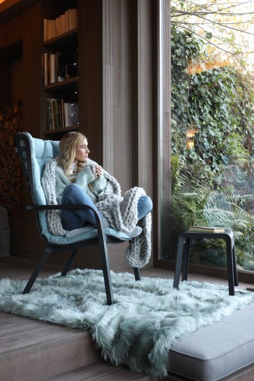 Лаунж-кресло пластиковое с подушкой Folio антрацит, голубой