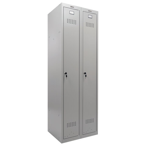 Усиленный металлический шкаф для раздевалок BRABIX LK (локер) - предназначен для хранения одежды в производственных, спортивных и других помещениях, а также для организации камер хранения.Жесткий корпус шкафа усилен сварной рамой, что обеспечивает устойчивость конструкции и длительный срок эксплуатации. Шкаф имеет 2 раздельные секции и предназначен для двух пользователей. На дверях установлены ключевые замки (2000 комбинаций). На каждую дверь в комплекте 2 ключа. Двери и задние стенки имеют вентиляционные отверстия. Сборку шкафа можно осуществлять 2 способами: на зацепах или с помощью саморезов, крепеж присутствует в комплекте. Есть возможность установки дверей с односторонним открыванием или с распашным, а также менять направление открывания. Конструкция шкафов позволяет скреплять их между собой. При этом есть возможность наращивать секции в ряд за счет общей боковой стенки. Все модели шкафов BRABIX LK совместимы. В комплект входят: 2 полки, перекладина, крючки. Шкаф поставляется в разобранном виде. Продукция марки Brabix выделяется лучшим соотношением цены и качества.