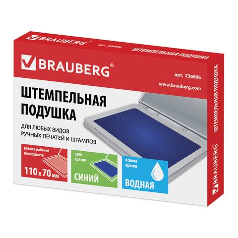 Штемпельная подушка BRAUBERG, 120х90 мм (рабочая поверхность 110х70 мм), синяя краска, 236866