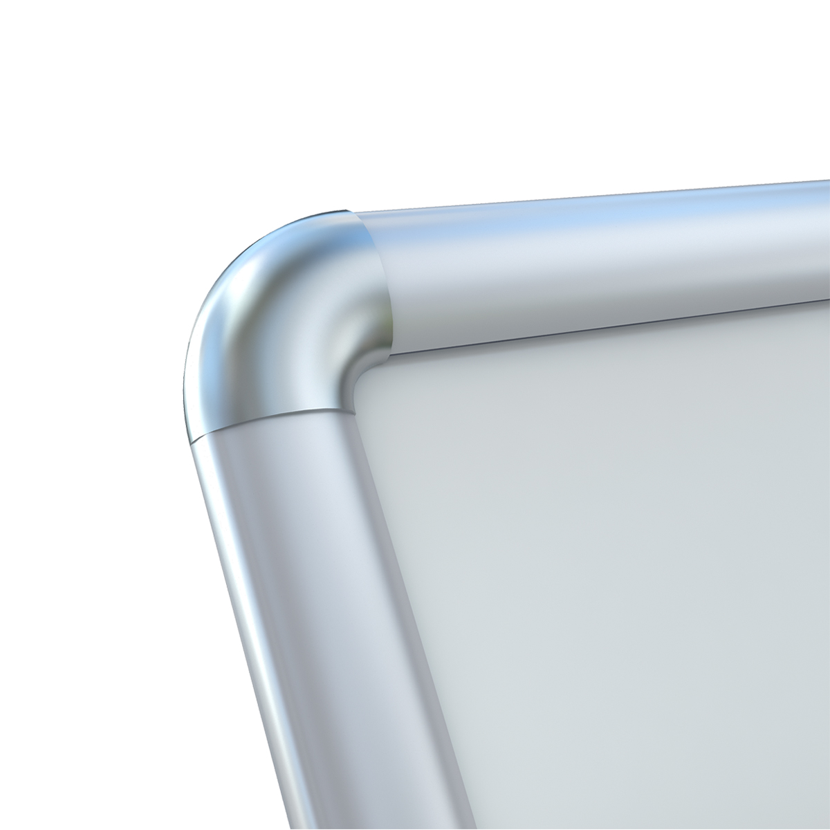 Изготовлен из алюминиевого клик-профиля, что обеспечивает простую смену постеров. Каждая из сторон рамы отгибается и при закрытии защелкивается на информационной вставке. Вместе с информационной вставкой устанавливается прозрачный защитный пластиковый экран-протектор, входящий в комплект.