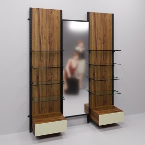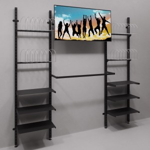 Благодаря разным видам крепления стойки к стене, возможно использовать стойку как пристенную с опорой на пол (что позволяет снять нагрузку со стены), так и дистанцировать стойку на расстояние 400мм от стены, спрятав перфорацию внутрь. Такая вариативность помогает сделать магазин интересней, не теряя при этом модульность и функциональность.