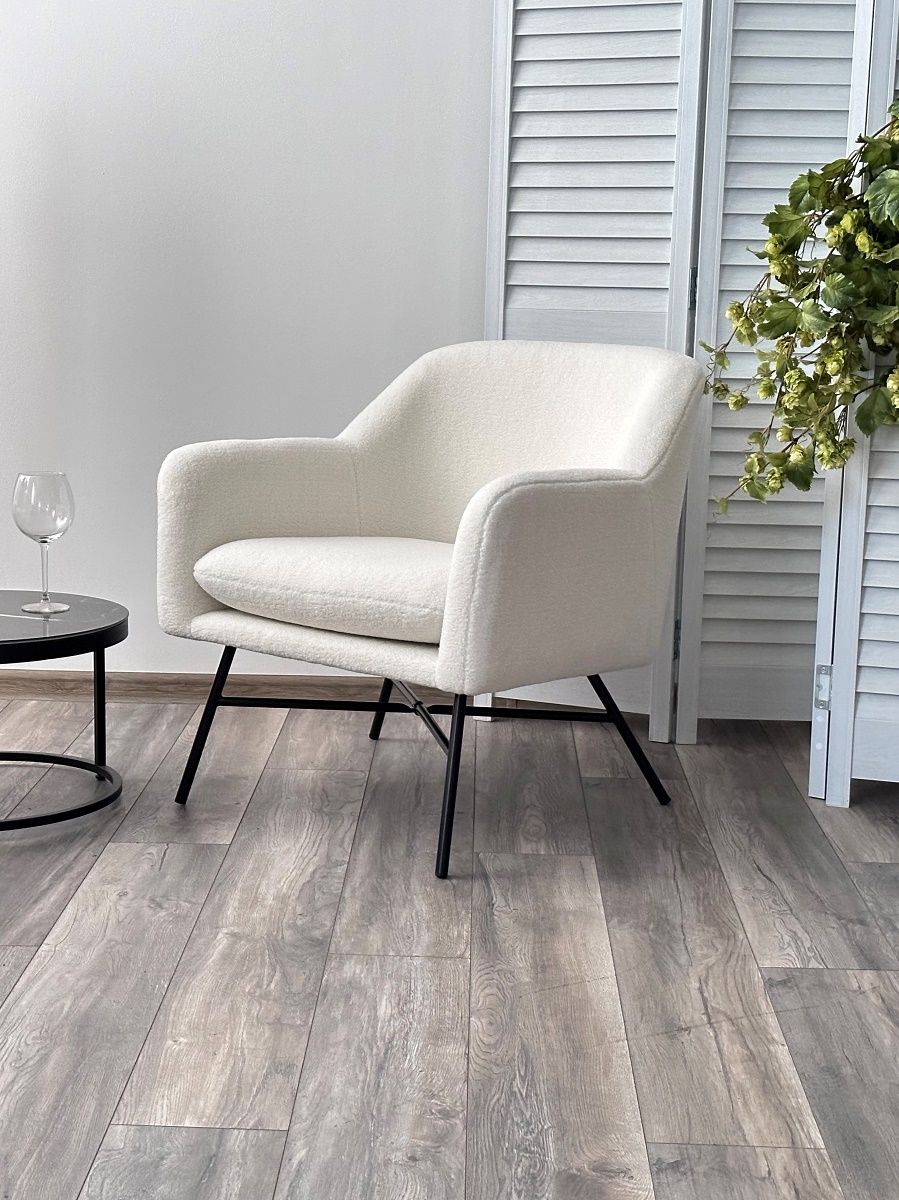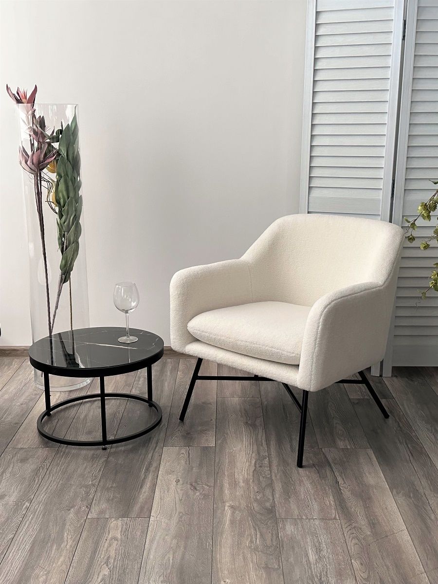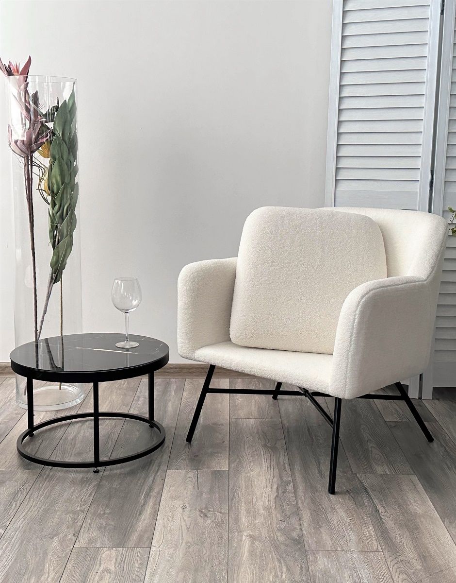 Кресло SHEEP NINI-01 Белый, teddy / черный каркас