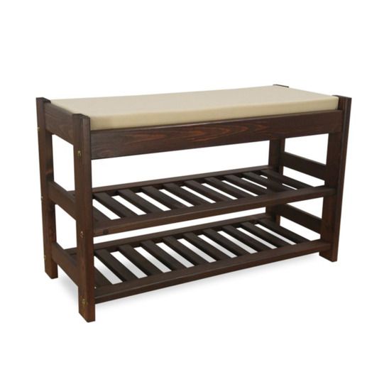Скамейка-обувница – удобная и компактная конструкция c открытыми полками и мягкой подушкой.