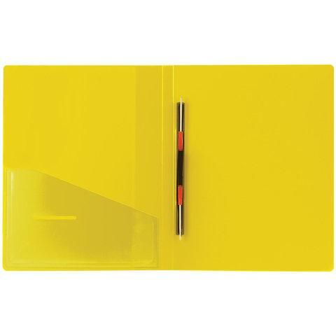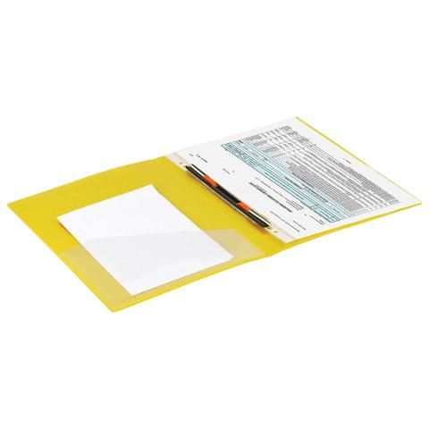Папка с металлическим скоросшивателем и внутренним карманом BRAUBERG "Contract", желтая, до 100 л., 0,7 мм, 221785