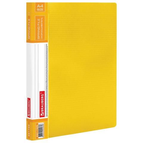 Папка бизнес-класса BRAUBERG "Contract" - незаменимая вещь для организаций с высоким документооборотом.Изготовлена из высококачественного пластика желтого цвета толщиной 0,7 мм с оригинальной линейной фактурой. Обеспечивает хранение до 100 листов формата А4. Металлический скоросшиватель с пружинным механизмом обеспечит надежную фиксацию документов. Кроме того, папка снабжена прозрачным внутренним карманом. Для идентификации имеется сменный бумажный корешок. Поставляется в индивидуальной упаковке.