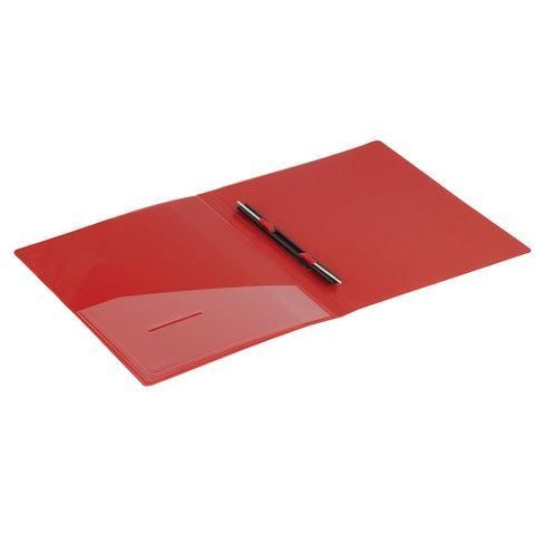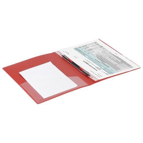 Папка с металлическим скоросшивателем и внутренним карманом BRAUBERG "Contract", красная, до 100 л., 0,7 мм, 221783
