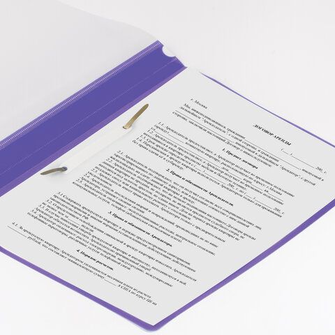 Классический мягкий пластиковый скоросшиватель STAFF предназначен для систематизации, хранения и транспортировки документов. Защищает бумаги от загрязнений, пыли, влаги и прочих механических повреждений.Фиксирует до 100 листов формата А4. Толщина пластика верхнего листа составляет 100 мкм, а нижнего - 120 мкм. Предельно простой механизм подшивки: металлические усики и пластиковая планка для надежной фиксации документов. Скоросшиватель изготовлен из качественного полипропилена. Прозрачный верхний лист позволяет определить содержимое, не открывая скоросшиватель, который к тому же снабжен сменным пластиковым корешком, что дает возможность структурировать информацию. Благодаря гладкой фактуре и яркому фиолетовому цвету обложки папка никогда не затеряется на полке.