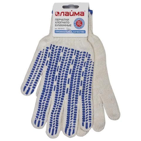 Перчатки хлопчатобумажные, 1 ПАРА, 7 класс, 70 г, 233 текс, ПВХ-протектор, ЛАЙМА ПРЕМИУМ, европодвес, БЕЛЫЕ, 601913