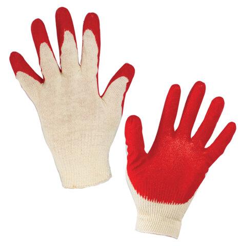Перчатки трикотажные с одинарным латексным обливом ладони. Обладают высокой прочностью, предназначены для защиты от повреждений острыми углами, порезов арматурой, стеклом, не промокают при работе с влажными материалами (идеальны для укладка плитки).Изготовлены из хлопчатобумажной пряжи плотностью 100 текс с покрытием из поливинилхлорида с нанесением рисунка на внутреннюю сторону перчатки. Латексный облив помогает обеспечить плотный захват и предотвращает соскальзывание детали. Резинки на манжетах обеспечивают плотное прилегание перчатки к руке. Перчатки белого цвета имеют 13 класс вязки. Вес пары - 36-38 г. Поставляются в комплекте 100 штук в полиэтиленовой упаковке.