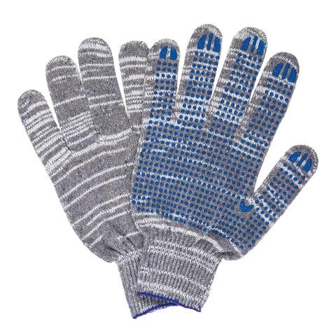 Хлопчатобумажные перчатки LAIMA "ЛЮКС" позволяют защитить руки от внешних воздействий в процессе физических нагрузок.Изготовлены из хлопчатобумажной пряжи плотностью 133 текс с покрытием из поливинилхлорида с нанесением рисунка на внутреннюю сторону перчатки. Покрытие ПВХ помогает обеспечить плотный захват и предотвращает соскальзывание детали. Резинки на манжетах обеспечивают плотное прилегание перчатки к руке. Перчатки серого цвета имеют 10 класс вязки. Вес пары - 50-52 г. Поставляются в комплекте 5 штук в полиэтиленовой упаковке. Хлопчатобумажные перчатки LAIMA используют в самых разных сферах производства для защиты от механических воздействий, агрессивных веществ, температур, искр или поражения электрическим током. Покупайте средства индивидуальной защиты в нашем интернет-магазине по доступным ценам.