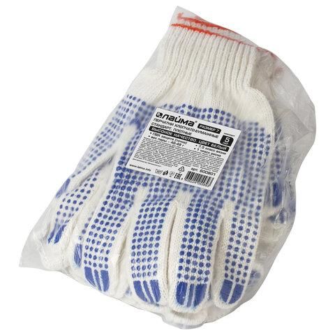 Перчатки хлопчатобумажные, КОМПЛЕКТ 5 ПАР, 7,5 класс, 46-48 г, 166 текс, ПВХ-точка, ЛАЙМА СТАНДАРТ, БЕЛЫЕ, 600801