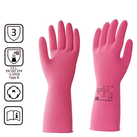 Перчатки латексные КЩС, прочные, хлопковое напыление, размер 9,5-10 XL, очень большой, красные, HQ Profiline, 73588