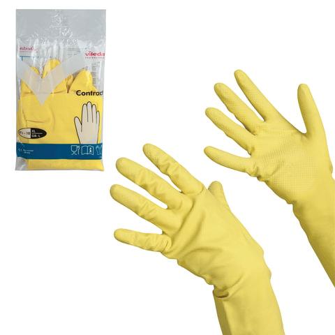 Перчатки МНОГОРАЗОВЫЕ резиновые VILEDA "Контракт", хлопчатобумажное напыление, размер 9,5-10, XL (очень большой), желтые, вес 66 г, 174327