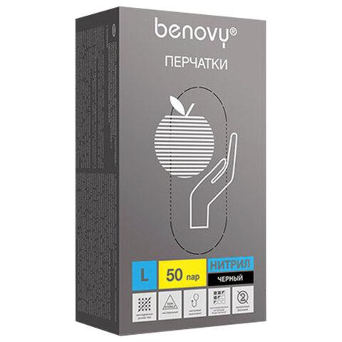 Перчатки нитриловые смотровые 50 пар (100шт) размер L черные BENOVY Nitrile Chlorinated,ЧЗ,М, шк2247