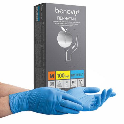Перчатки нитриловые смотровые 100 пар (200 шт.), размер M, голубые, BENOVY Nitrile Chlorinated, ЧЗ, М
