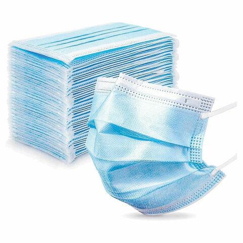 Маски одноразовые КОМПЛЕКТ 50 шт. медицинские 3-х слойные голубые (фильтр мельтблаун) SENSE, короб
