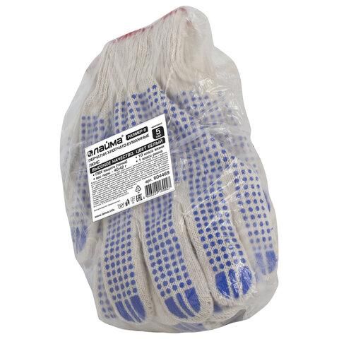 Перчатки хлопчатобумажные, КОМПЛЕКТ 5 пар, 10 класс, 40-42 г, 116 текс, ПВХ-точка, ЛАЙМА ЛЮКС, БЕЛЫЕ, 604469