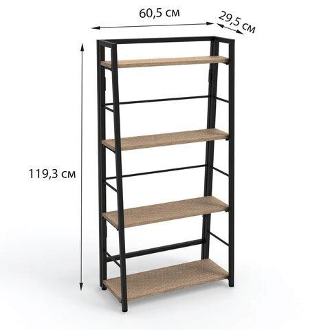 Стеллаж BRABIX "Smart SH-007", 605х295х1193 мм, ЛОФТ, трапеция, складной, металл/ЛДСП дуб, каркас черный, 641872