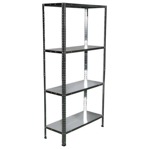 Стеллаж металлический BOOMHOUSE (БУМХАУС) 1500x750x300 мм, 4 полки, нагрузка на стеллаж до 120 кг, серебристый, 291418