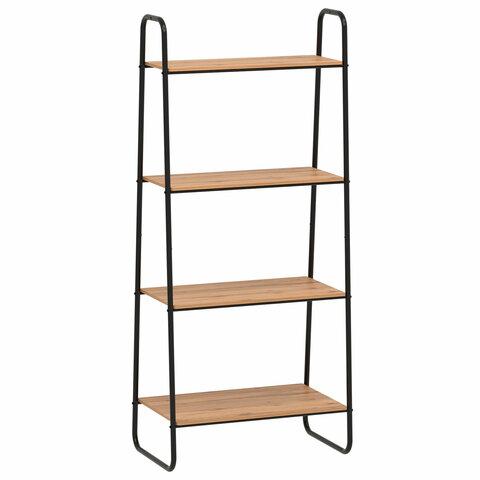 Стеллаж на металлокаркасе "Скандинавия-24", 650х385х1470 мм, 4 полки ЛДСП, черный/дуб, CТCП24 Ч