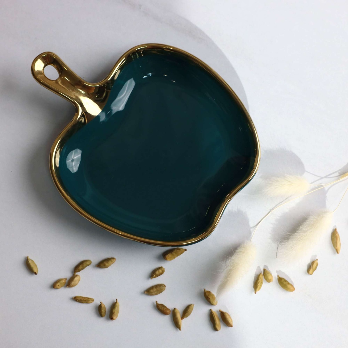 Блюдо фигурное MOONSHINE, керамика, темно-зеленый+золото, 18см
