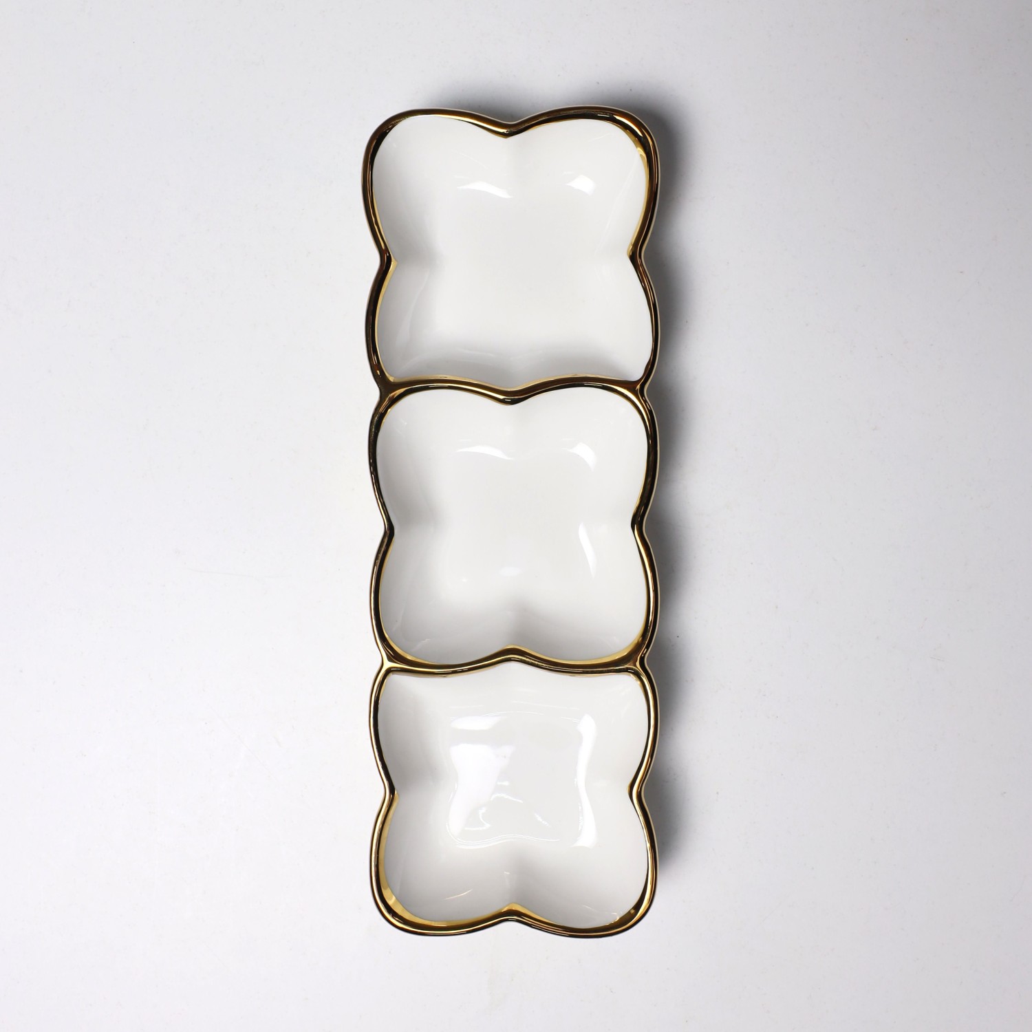 Менажница MOONSHINE, 3 ячейки, керамика, белый+золото