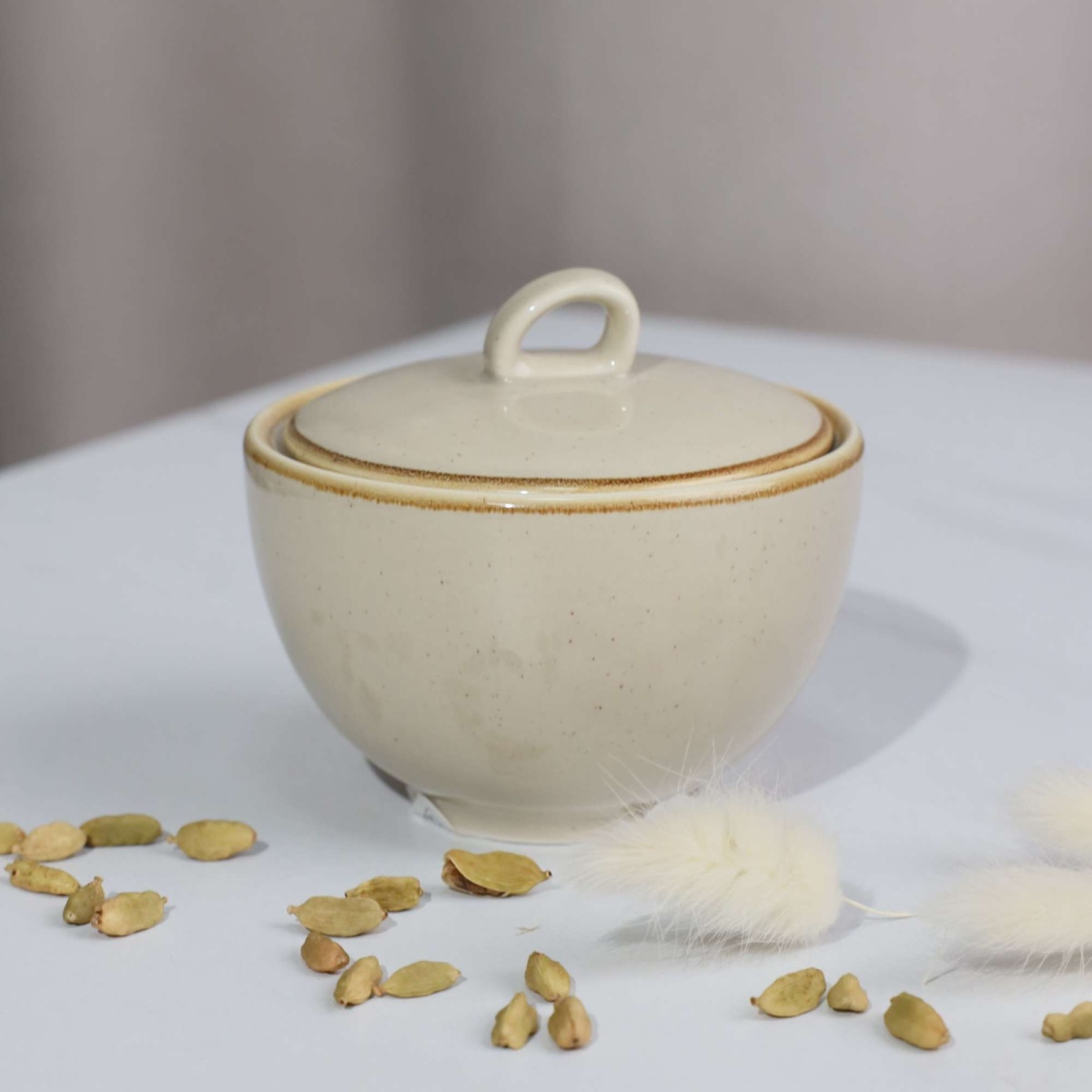 Наименование: Сахарница VITAL, фарфор, бежевый, 10*10*9см