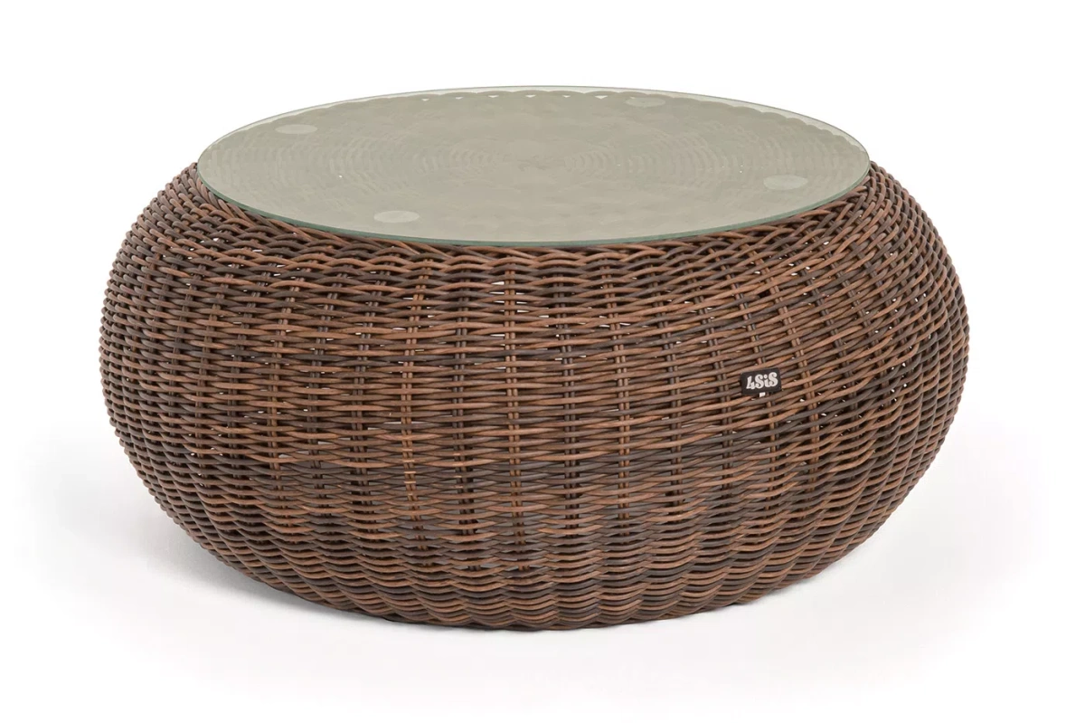 Плетеный столик представлен в коричневом цвете.