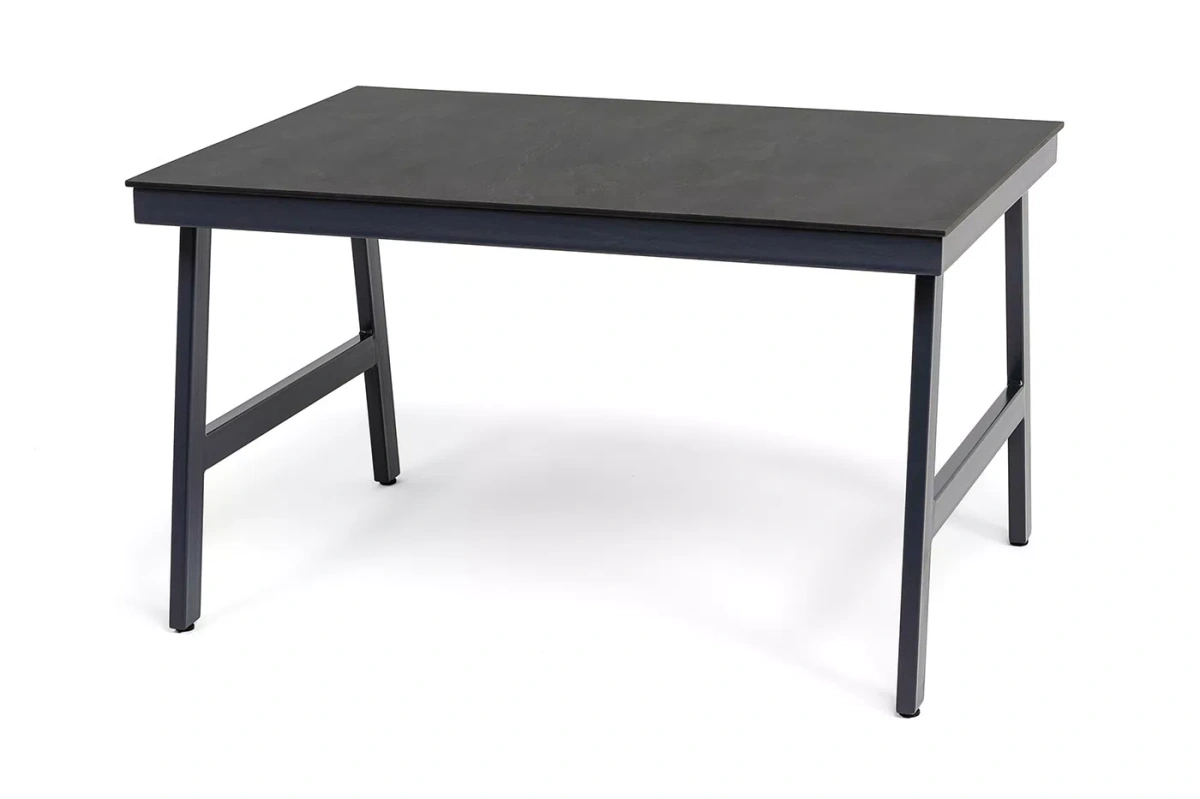 Размер стола - 1300×900×750 мм. Столешница изготовлена из компакт-пластика HPL c рисунком цвета «серый гранит».