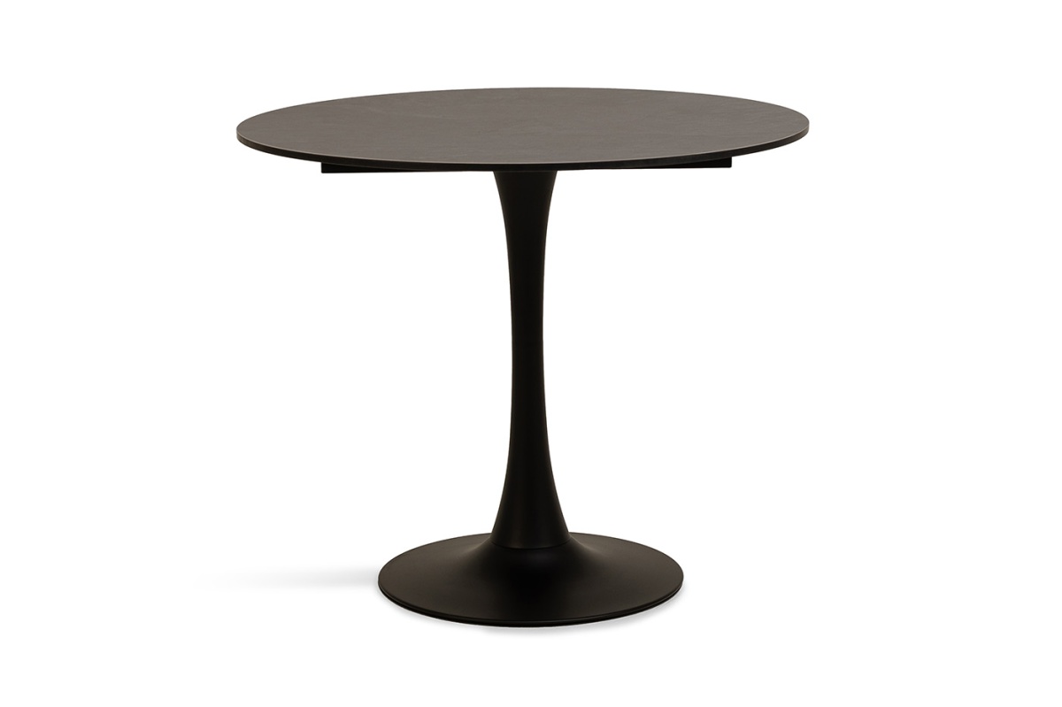 Обеденный стол «Тюльпан» с изящной плетеной ножкой из прочного металла, окрашенного в черный цвет.