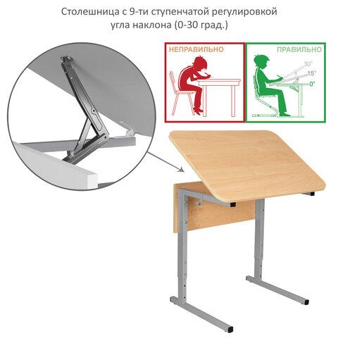 Стол-парта 1-местный, регулируемый угол, СУТ.54-01, 600х500х640-780 мм, рост 4-6, серый каркас, ЛДСП клён