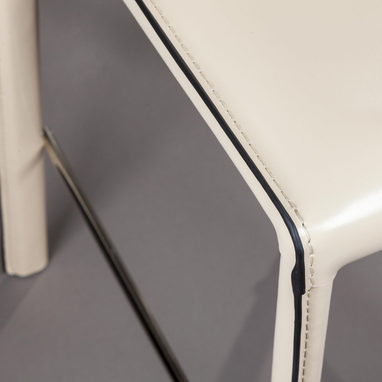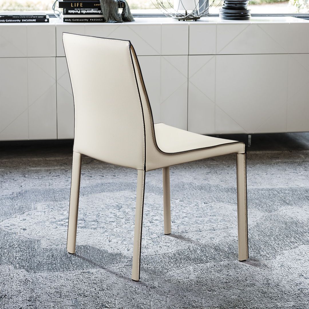 Крепкие металлические ножки скрыты под натуральной кожей такого же цвета, как и сам стул, благодаря этому создается лаконичный образ единого целого. На ножках предусмотрены специальные пластиковые накладки, которые придают стулу дополнительную устойчивость и защищают полот царапин.