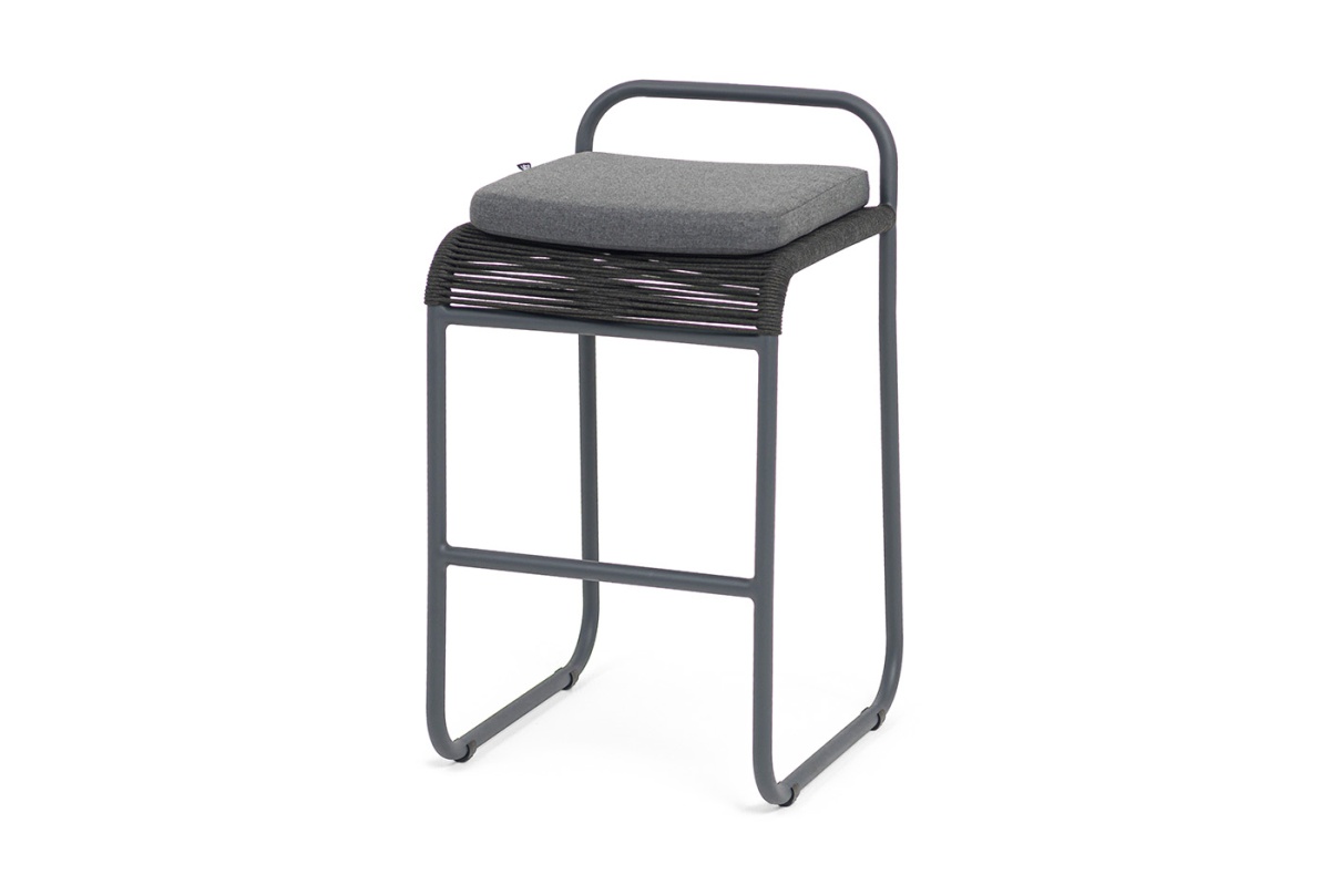 "Ането" стул барный плетеный из роупа, каркас алюминий темно-серый (RAL7024) муар, роуп темно-серый круглый, ткань темно-серая 027цвет Темно-серый