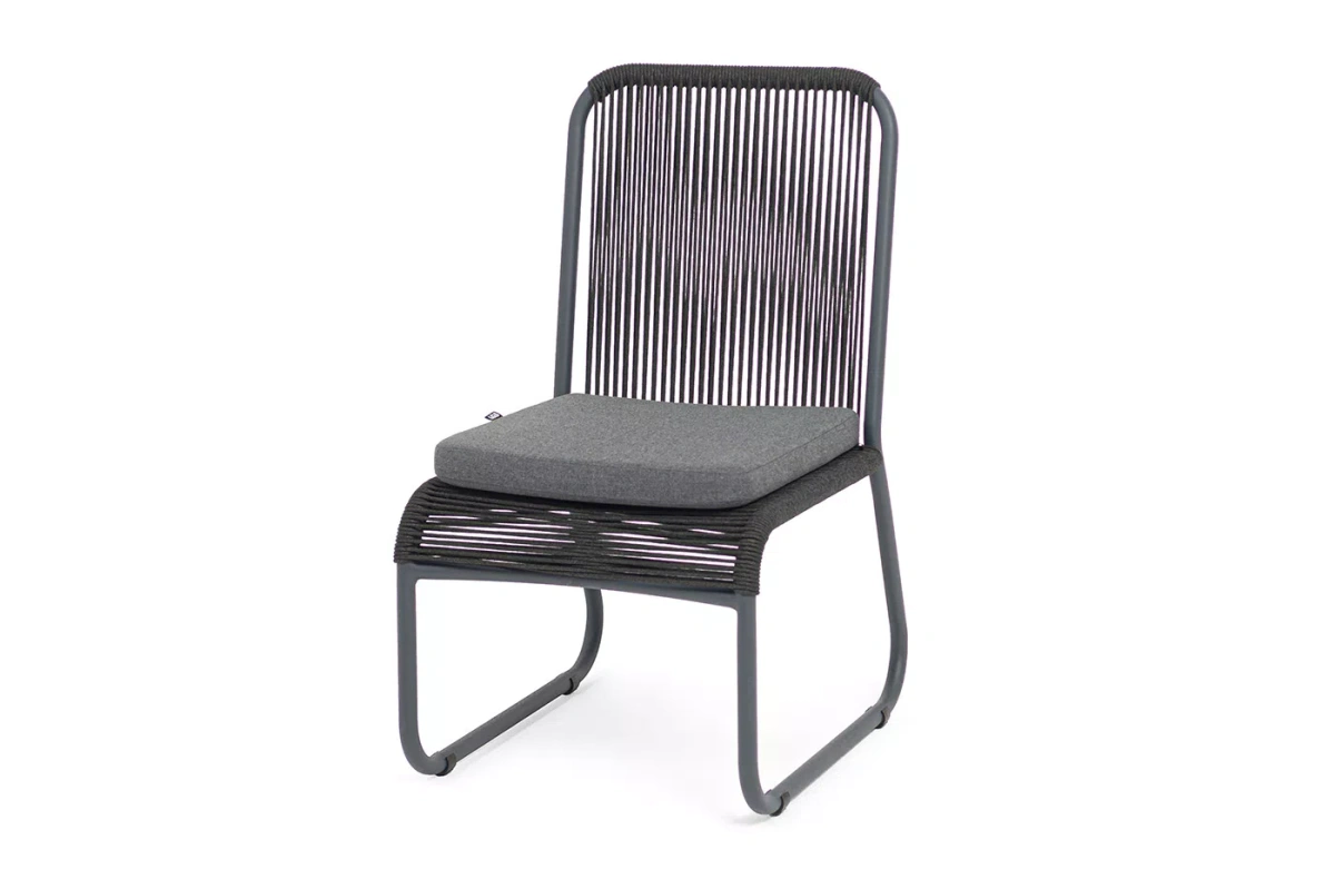 "Ането" стул плетеный из роупа, каркас алюминий темно-серый (RAL7024) муар, роуп темно-серый круглый, ткань темно-серая 027цвет Темно-серый