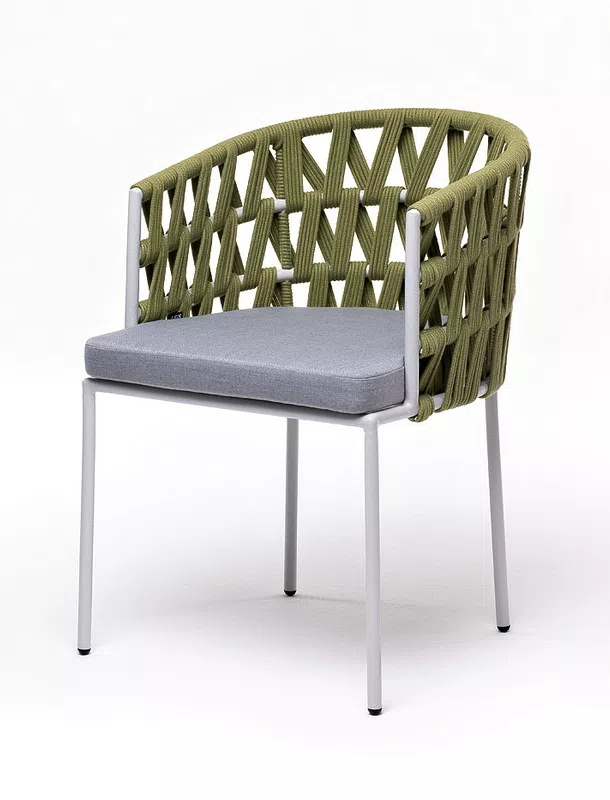 "Диего" стул плетеный из роупа, каркас из стали светло-серый (RAL7035) шагрень, роуп салатовый меланж круглый, ткань светло-сераяцвет Салатовый