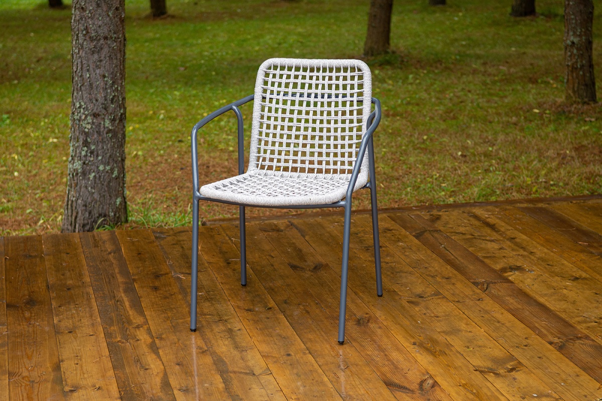 «Тунис» стул плетеный из роупа, полиэфирной веревки с каркасом из алюминия белого цвета.