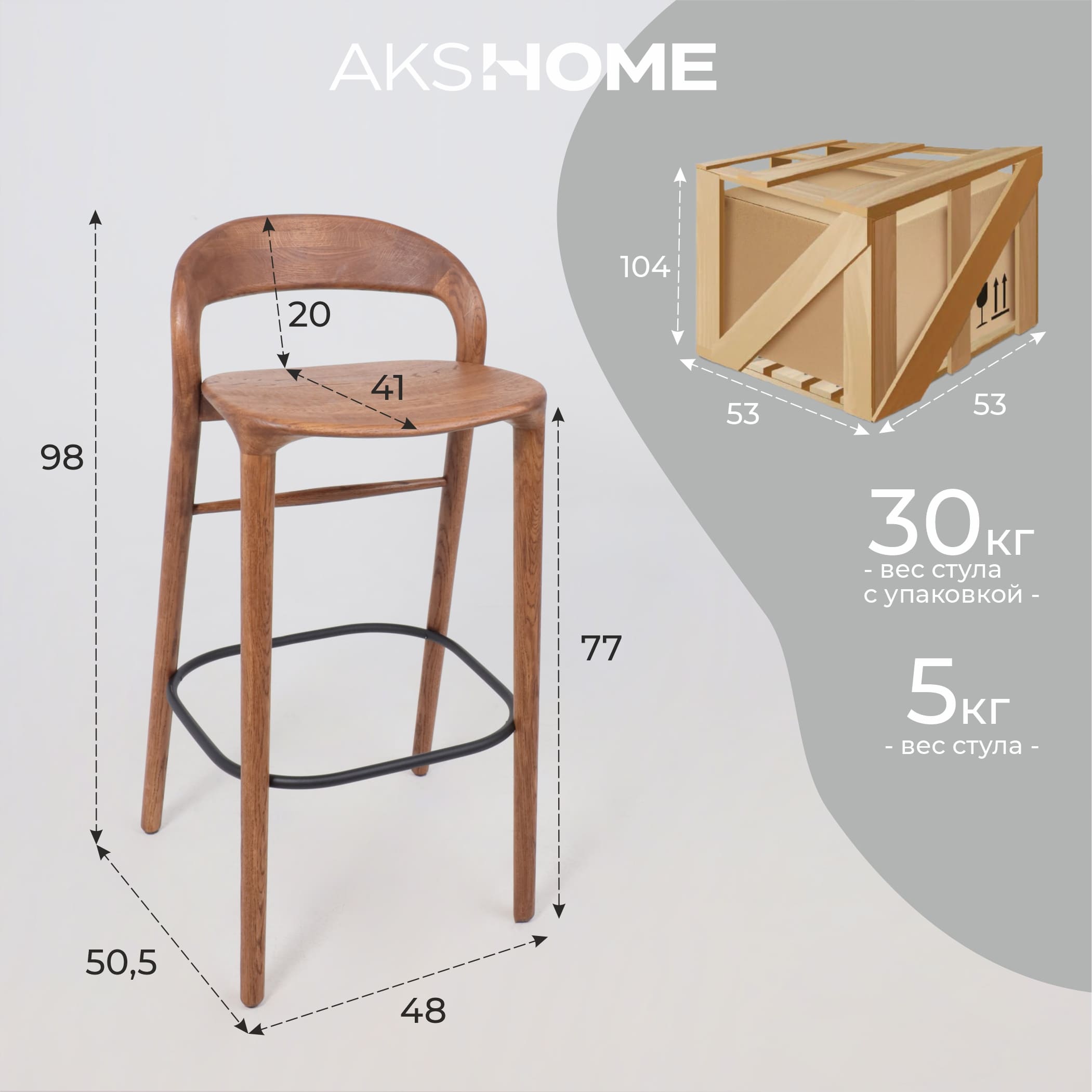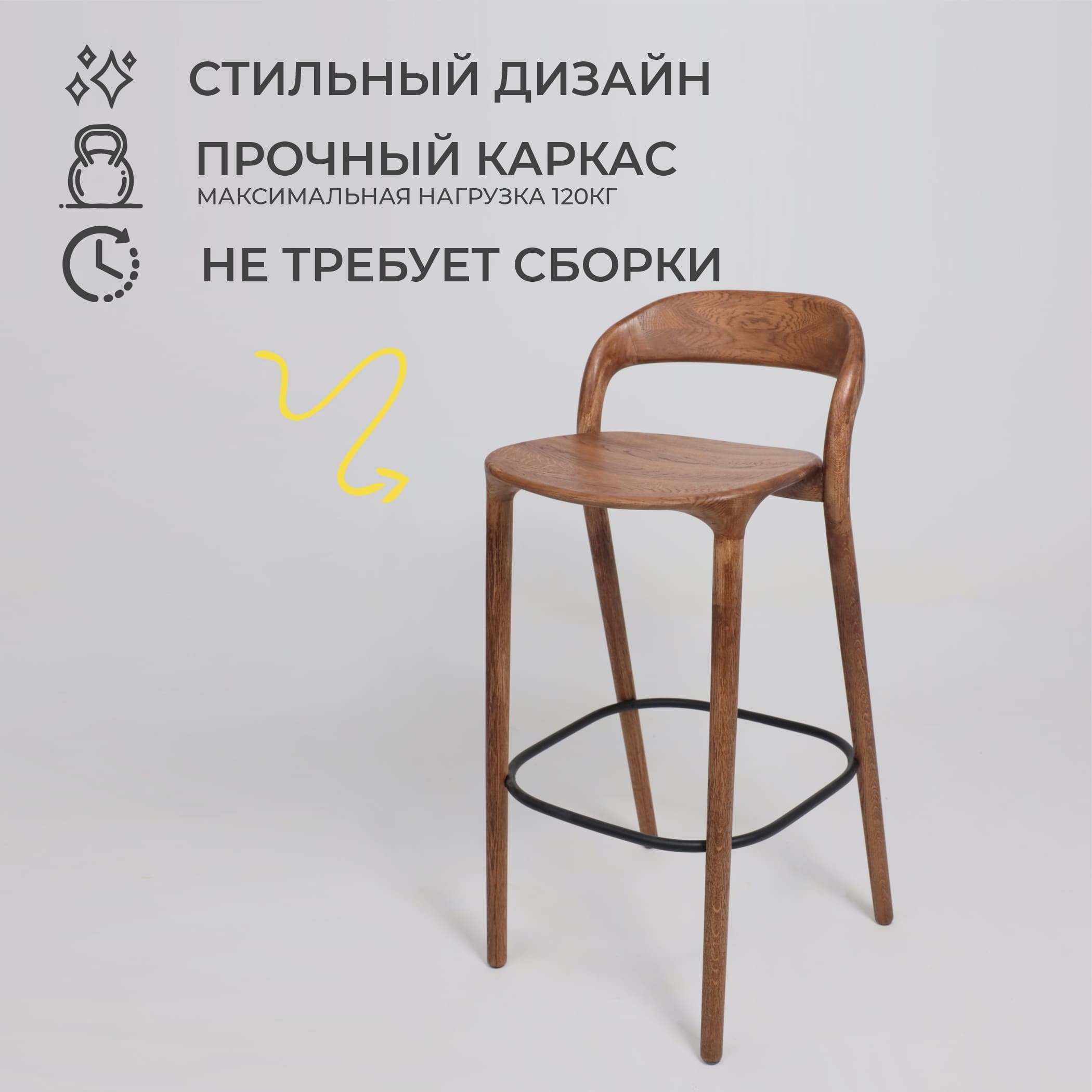 Наименование: Стул барный Мэри, дуб натуральный коньяк, массив дуба