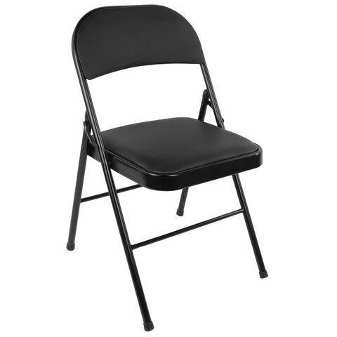 Стул складной BRABIX "Golf Plus CF-003 КОМФОРТ", черный каркас, кожзам черный, В КОРОБЕ, 533026