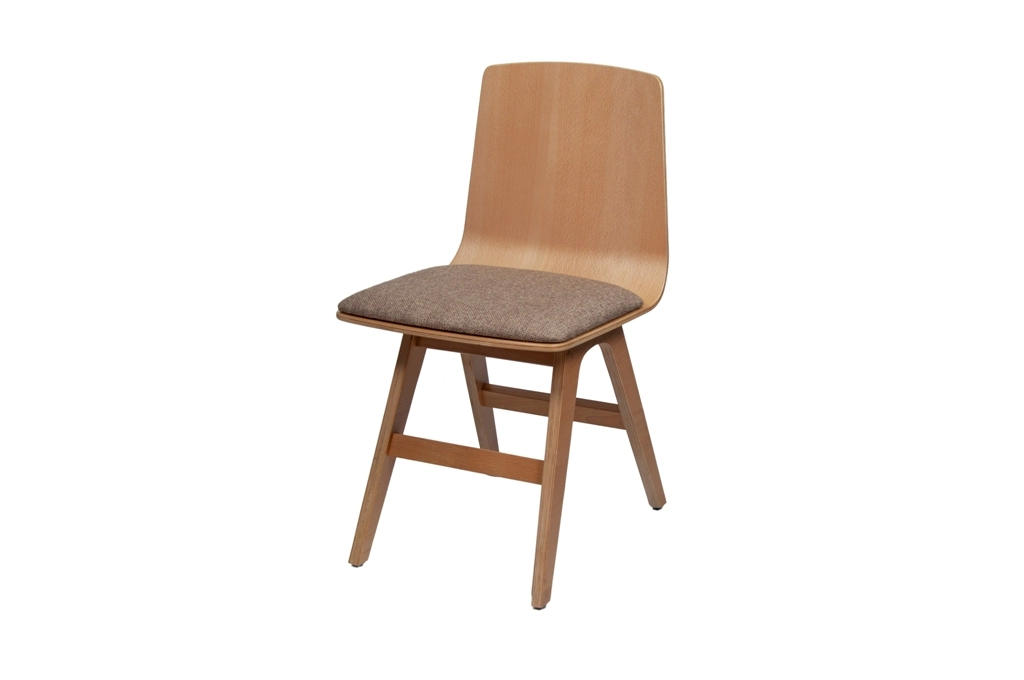 Сиденье стула Атлас МН выполнено из гнутой фанеры облицованной шпоном бука. Сиденье имеет мягкую тканевую накладку. Каркас выполнен из фанеры и облицован шпоном бука. Стул окрашивается в один из 12 цветов на выбор. Ножки оснащены резиновыми подпятниками.