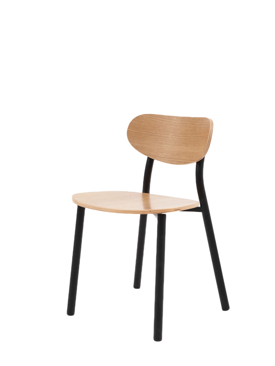 Сиденье и спинка стула Эко выполнены из гнутой фанеры, облицованной шпоном дуба. Каркас выполнен из металлической трубы диаметром 32 мм. Возможно изготовление с покраской каркаса в цвет по каталогу Ral. Ножки оснащены пластмассовыми подпятниками. Поставляются в разобранном виде по 2 шт в одной упаковке.