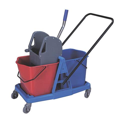 Уборочная тележка BRABIX предназначена для проведения влажной уборки в офисных и производственных помещениях с большой площадью.Представляет собой пластиковый каркас с установленными на него механическим отжимом для петельных тряпок и МОПов и 2 съемными ведрами по 23 л (рекомендованный объем каждого ведра - 20 л). База и инвентарь изготовлена из качественного пластика. Тележка выполнена в трехцветном исполнении: красный, синий и серый. Колеса позволяют перемещаться в произвольном направлении. Габариты - 92х44х85 см. Вес - 8 кг. Комплектация: отжим, 2 лотка, транспортная ручка, каркас.